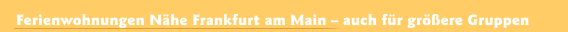 Alle Ferienwohnungen, die Sie bei uns nahe Frankfurt anmieten können, sind vollständig ausgestattet! Sie verfügen über eine Einbauküche und einen Wohn-Essbereich, ein oder zwei Bäder mit teilweise separater Toilette sowie über 1 bis 6 Schlafzimmer, SAT-TV und kostenloses Internet (W-Lan).