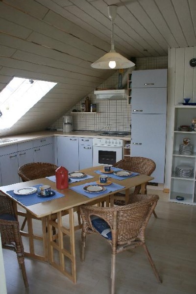 - Eine große Ess-Küche mit Ceran-Kochfeld, Backofen, Kühl-Gefrierkombination, Mikrowelle, Spülmaschine, Kaffeemaschine, Wasserkocher, Toaster usw.